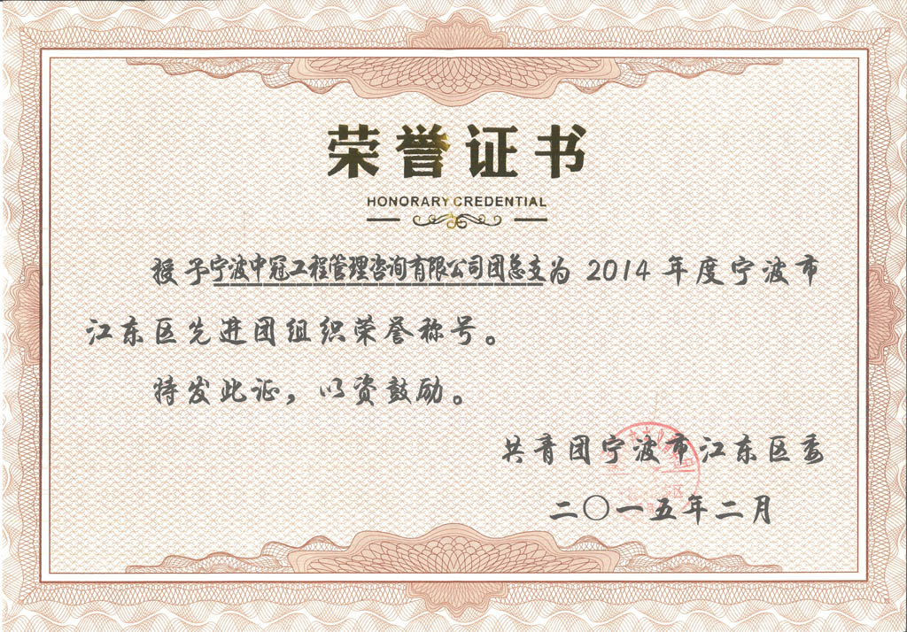 2014年度寧波市江東區(qū)先進(jìn)團(tuán)組織榮譽(yù)稱號(hào)-中冠榮譽(yù)-中冠咨詢-中冠工程管理咨詢有限公司