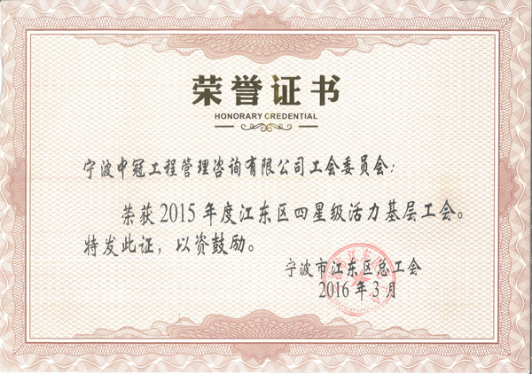 2015年度江東區(qū)四星級活力基層工會-中冠榮譽(yù)-中冠咨詢-中冠工程管理咨詢有限公司