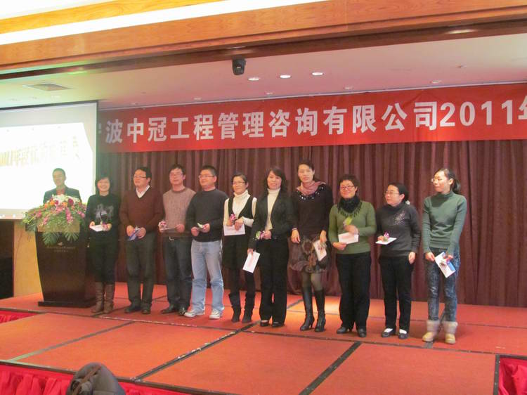 首先,在歡快、激情的樂曲聲中,開始了表彰大會。公司顧問趙榮燾首先宣讀了2011年度公司優(yōu)秀員工的獲獎(jiǎng)名單和表彰決定,任福成、徐英健、強(qiáng)計(jì)中、馬萬龍、林肖峰、徐黎燕、孫艷、范琦、潘雅波、韓奇燕等10人榮獲2011年度公司優(yōu)秀員工稱號,并每人獲獎(jiǎng)勵(lì)2000元現(xiàn)金。其后陳勇副總、張曉坤副總、總師辦張丹蕾主任、周巍副主任等依次宣讀了對2011年通過注冊造價(jià)師、注冊咨詢工程師、招標(biāo)師、造價(jià)員、工程師等25名考試合格人員、參加市知識競賽3名優(yōu)秀人員及11名優(yōu)秀協(xié)審人員的表彰決定,并為獲獎(jiǎng)人員頒發(fā)證書及獎(jiǎng)金。公司全體員工為獲獎(jiǎng)員工獻(xiàn)上了最熱烈的掌聲和最真摯的祝賀。
