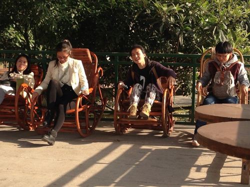 臨近黃昏,大家把娛樂(lè)項(xiàng)目都玩的差不多了,回到別具風(fēng)格的芬蘭木屋,院子里的風(fēng)光獨(dú)好,大家不約而同的圍坐在院子里,夕陽(yáng)透過(guò)樹梢,斜照在每個(gè)同事的臉上,大家暢聊旅行感悟。