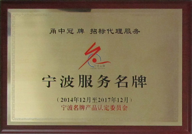 根據(jù)寧波名牌產(chǎn)品認(rèn)定委員會(huì),近期發(fā)布的《寧波名牌產(chǎn)品認(rèn)定委員會(huì)公告》,我公司被授予“寧波服務(wù)名牌”的榮譽(yù)稱號(hào)。