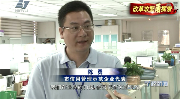 記“改革攻堅(jiān)甬探索 信用聯(lián)合獎(jiǎng)懲 打造‘信用寧波’”之中冠報(bào)道 http://www.nbtv.cn/gbds/ds/NBTV1/231/2016-08-23/2016082310517611.html (圖為我司常務(wù)副總陳勇先生接受采訪)