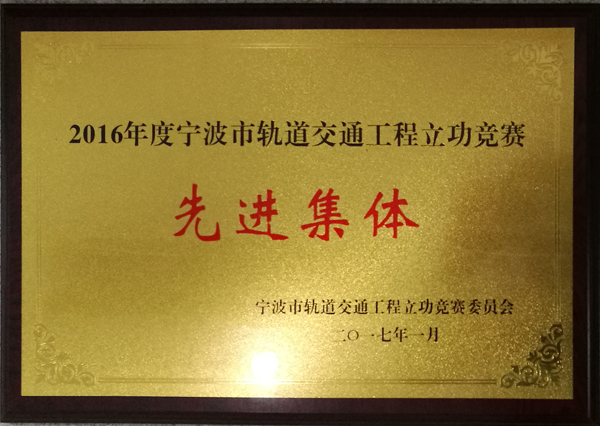 近日我公司被寧波市軌道交通工程立功競賽委員會(huì)授予“2016年度寧波市軌道交通工程立功競爭賽先進(jìn)集體”的榮譽(yù)稱號(hào),同時(shí)我公司范琦同志被授予“2016年度寧波市軌道交通工程立功競賽活動(dòng)先進(jìn)個(gè)人”榮譽(yù)稱號(hào)。 特此報(bào)喜