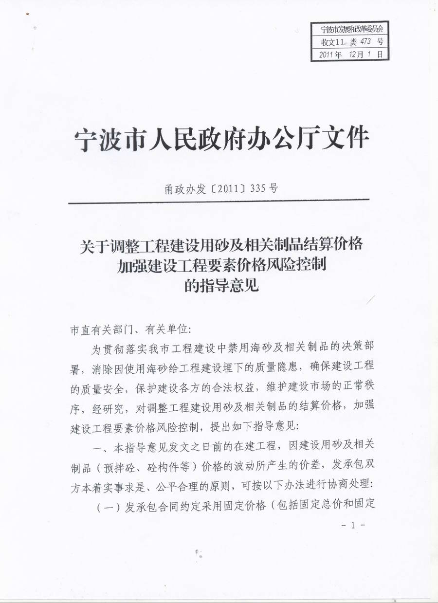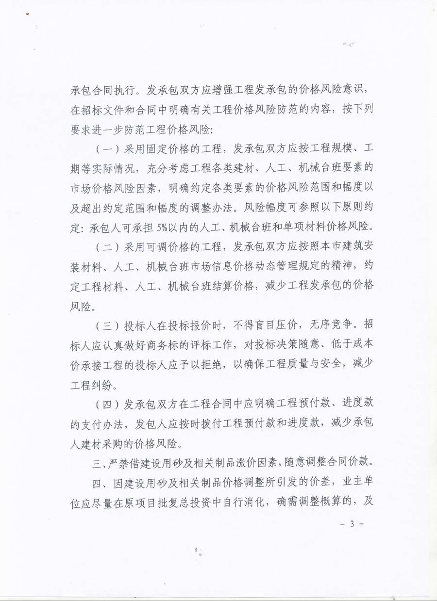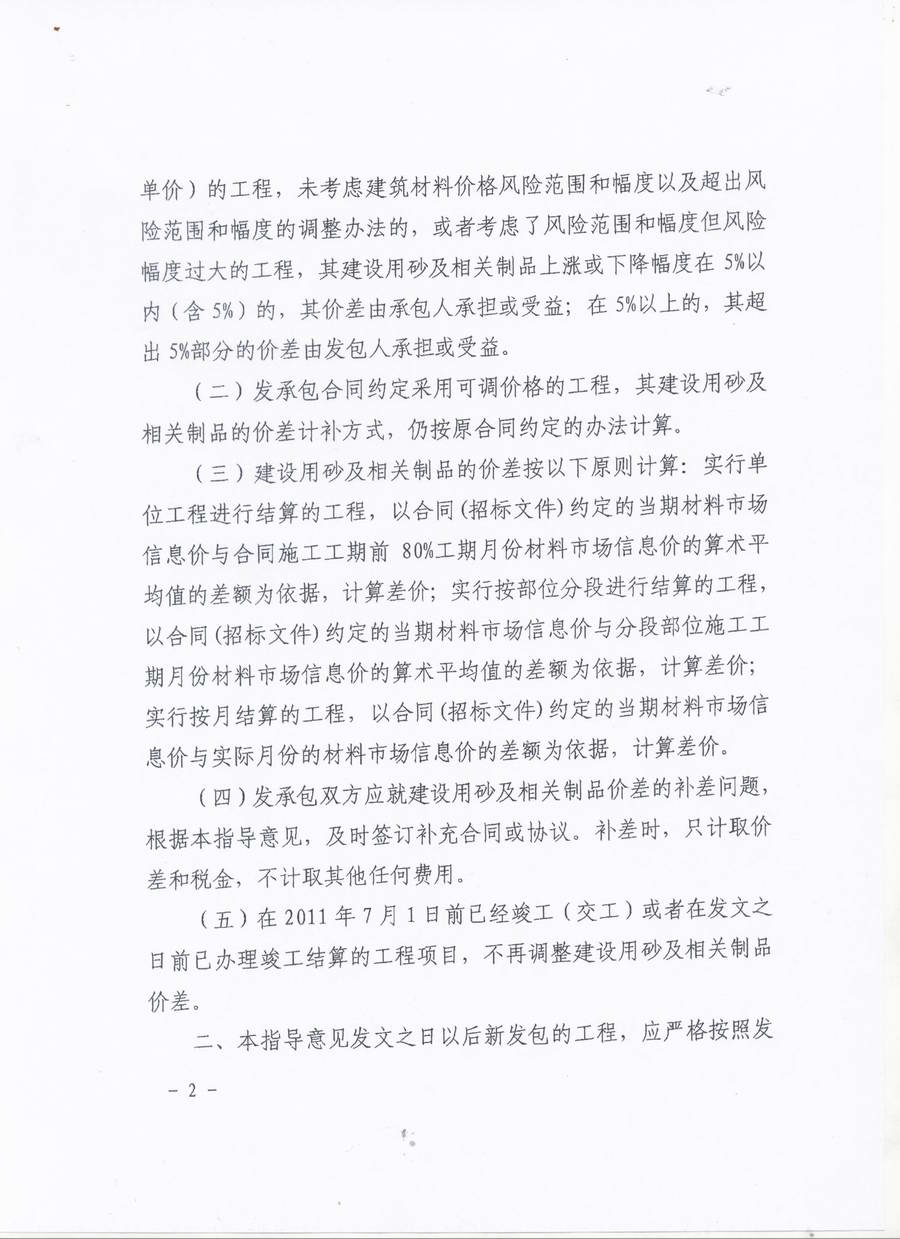 關于調(diào)整工程建設用砂及相關制品結(jié)算價格加強建設工程要素價格風險控制的指導意見