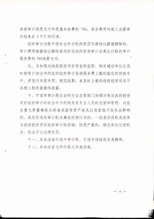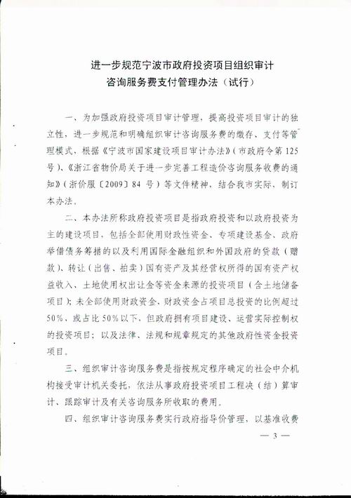 《進(jìn)一步規(guī)范寧波市政府投資項目組織審計咨詢服務(wù)費(fèi)支付管理辦法(試行)》的通知